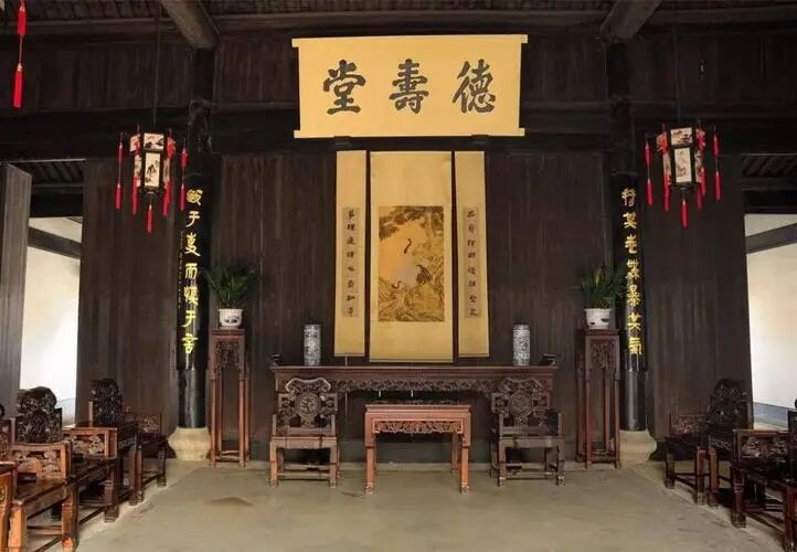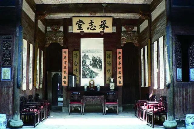 大户人家的厅堂,讲究十分严格有序,中规中矩,以正厅中柱线为基准,采用成组成套对称方式,摆放家具、楹联、匾额、挂屏、书画、条幅都以中线为中心,形成两边对称布局,庄重、高贵、文雅、又有文化之气度。