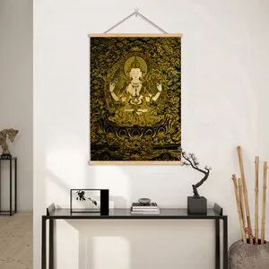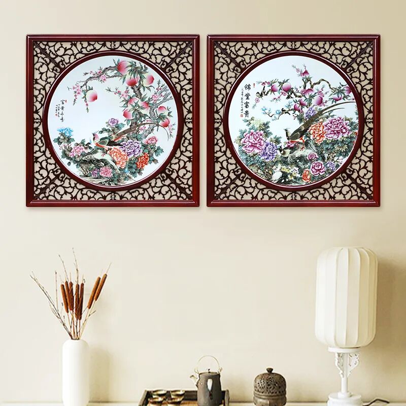 其他家居饰品也以中式字画、挂屏、具有禅意的摆件为主。