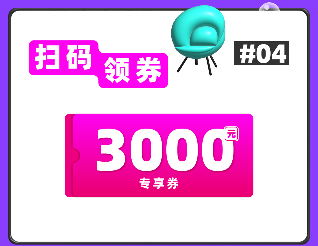 活动期内,顾客到店扫码进入企业微信群,即可领取3000元专享券包1套,共限500套,领完即止;