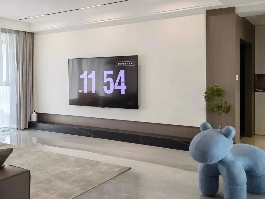 2、电视墙做的比较复杂,费钱还不耐看,越看越浮夸。还是选简单点儿的,最好是整面墙做封闭式柜体,能收纳不积灰,还耐看又高级。