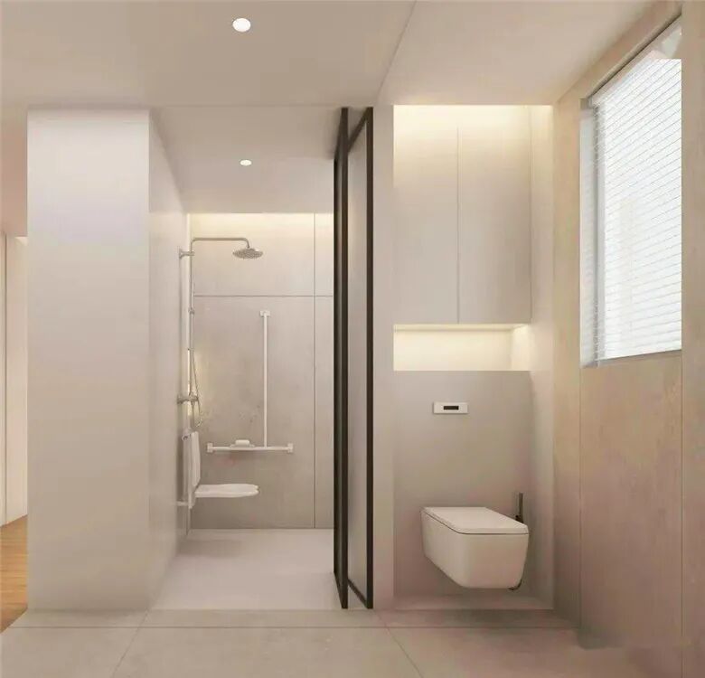 1、卫生间不做干湿分离,每次洗澡都弄得哪儿都是水渍。如果空间不够大可以把洗脸区放在浴室外用半隔断做半开放式空间划分。