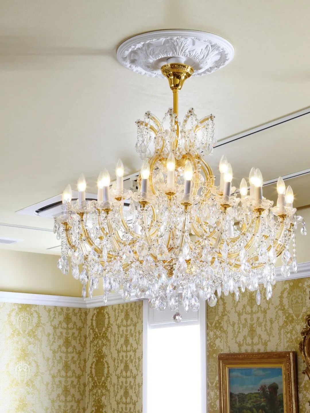 3、客厅选了复杂的水晶吊灯,用久了发黄还不好清洁打理。