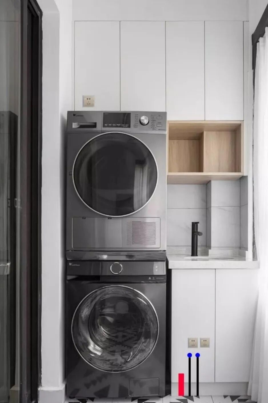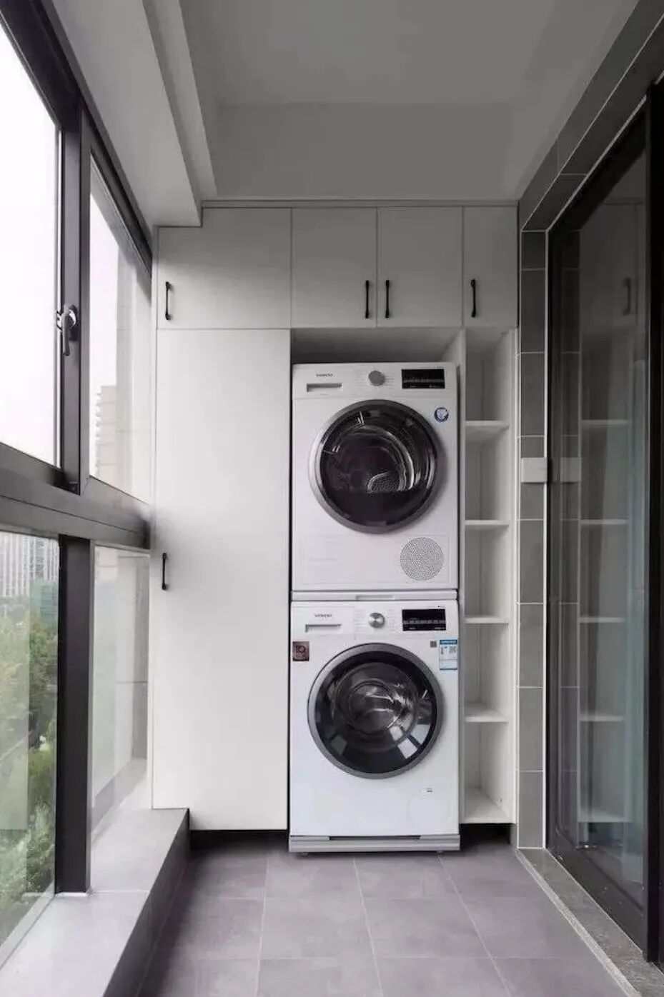 8、以为装了洗烘机,就不用晾衣服了,阳台收纳没规划好,洗衣液衣架之类的都没地方放,杂乱又浪费空间还不好看。