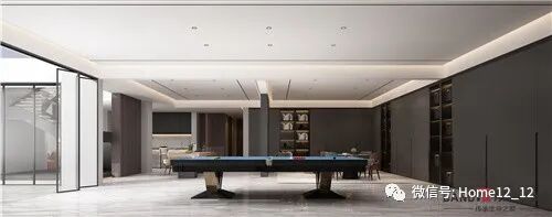 深黑色的定制柜与灰白大理石岩板的极致对比营造出高级轻奢格调。在这样的空间里业主一家尽享平时的闲暇娱乐时光。