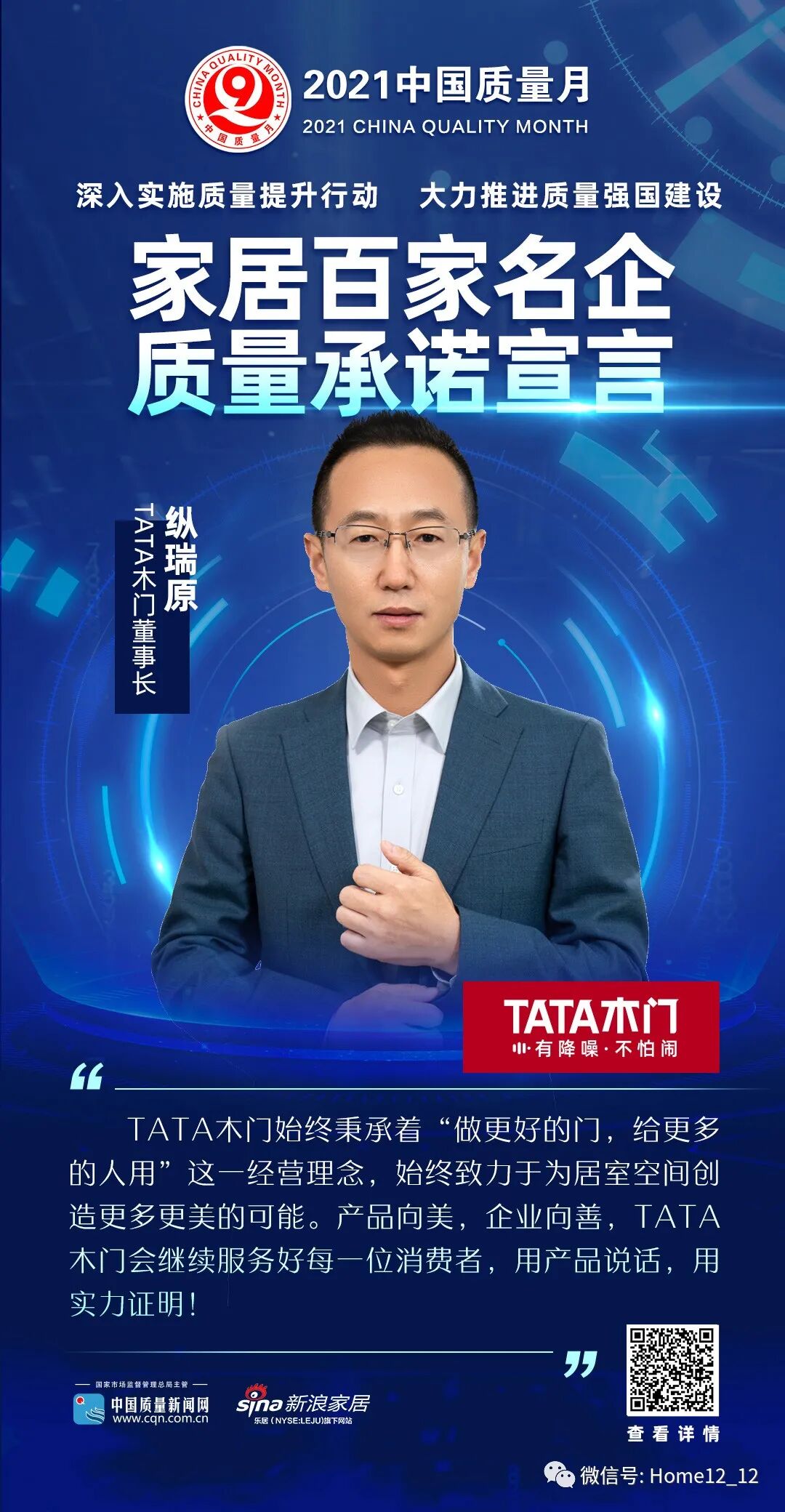 “质量月”期间,中国质量新闻网携手新浪家居,共同向全国家居企业发起“家居百家名企质量承诺”活动,树立典型示范标杆,诠释产品内涵,传播企业品牌魅力,共同引导消费者关注质量消费。