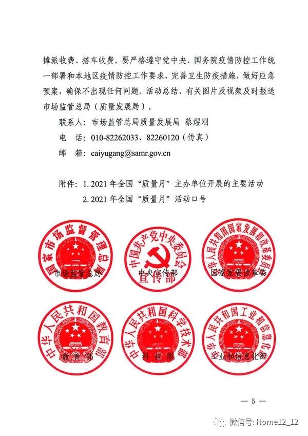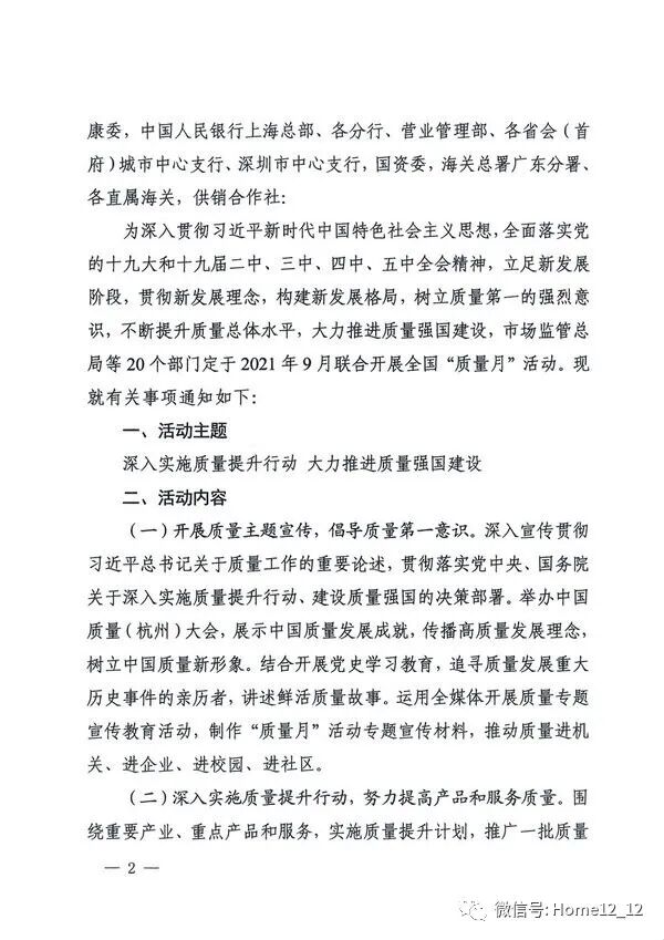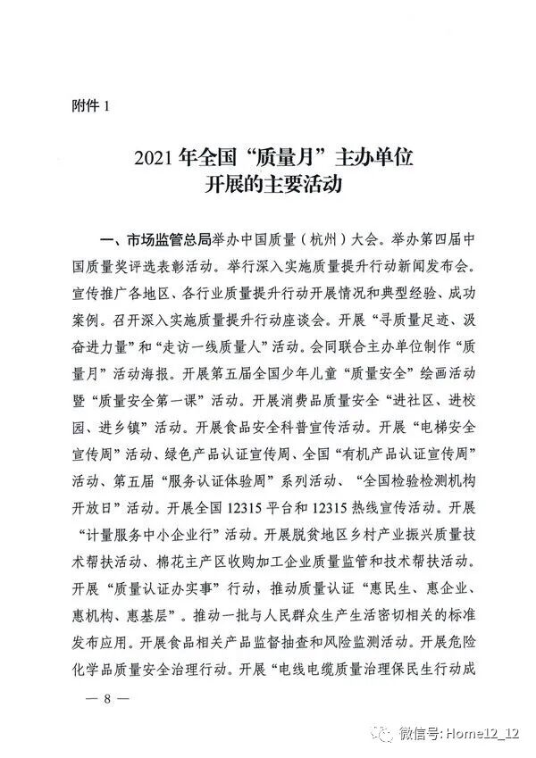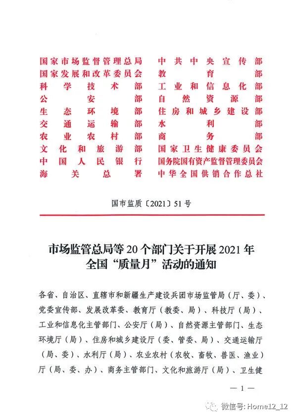 市场监管总局等20个部门关于开展2021年全国“质量月”活动的通知