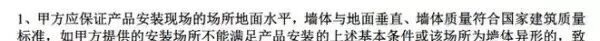 误区二,厂家是专业的,就交给他们好了,我啥也不用管 这是很多眼泪的来源,我见过太多因为这个导致的惨剧了。比如收不了的边,盖不住的口,挡不住的钉子眼,以及怎么都装不平的线条。先来看一份比较常规的定制家具合同,其中的一个条款: 注意看到水平、垂直、墙体质量几个词,很重要。所谓差之毫厘谬以千里,在安装的时候就全部显现出来了。 比如一个阴角,如果角度不是刚刚好的90度,那柜子在安装的时候,就没法紧贴墙面装平,侧立板与墙面之间就一定会有很大的缝隙——我之前就遇到过一家,宽度1.7米的柜子,左侧的柜体背板与墙面的缝隙达到4公分。 往上看的话 或许你觉得缝隙没关系,最多就是不太好看,用个侧视板挡住就可以了。那如果这是用膨胀螺丝或者吊码来安装的吊柜呢?缝隙就意味着胀钉无法完全贴合,受力是非常不稳定的,万一出点问题……会砸死人的。 还有墙体的问题。现在很多家里为了多一些收纳空间,会安排一些吊柜。吊柜的安装是要靠墙体来固定的,最常见的方法是打膨胀生根。 但是,很多家里改水电的时候,墙体开槽埋线埋管,还有开发商预埋的管线,这就给吊柜的安装留下巨大的隐患——万一打膨胀的时候电锤打坏了管线,这可不是随便就能处理好的。 还有一些墙体用的是空心砖,不具备承重能力,就算当时勉强装上去,也很难保证将来长期使用不出问题。至于石膏板结构的轻质隔墙,木工板隔断这种,外面看起来是墙,但是最多只能挂个电视机,装柜子是休想了。 试想一下如果电锤把线管打坏了。。。 结论:请大家不要以为定制家具是万能的,这只是你整个装修中的一个环节而已,它无法孤立存在,要与墙体、墙面、顶面、地面、踢脚线、门、门套等等所有的项目相匹配。