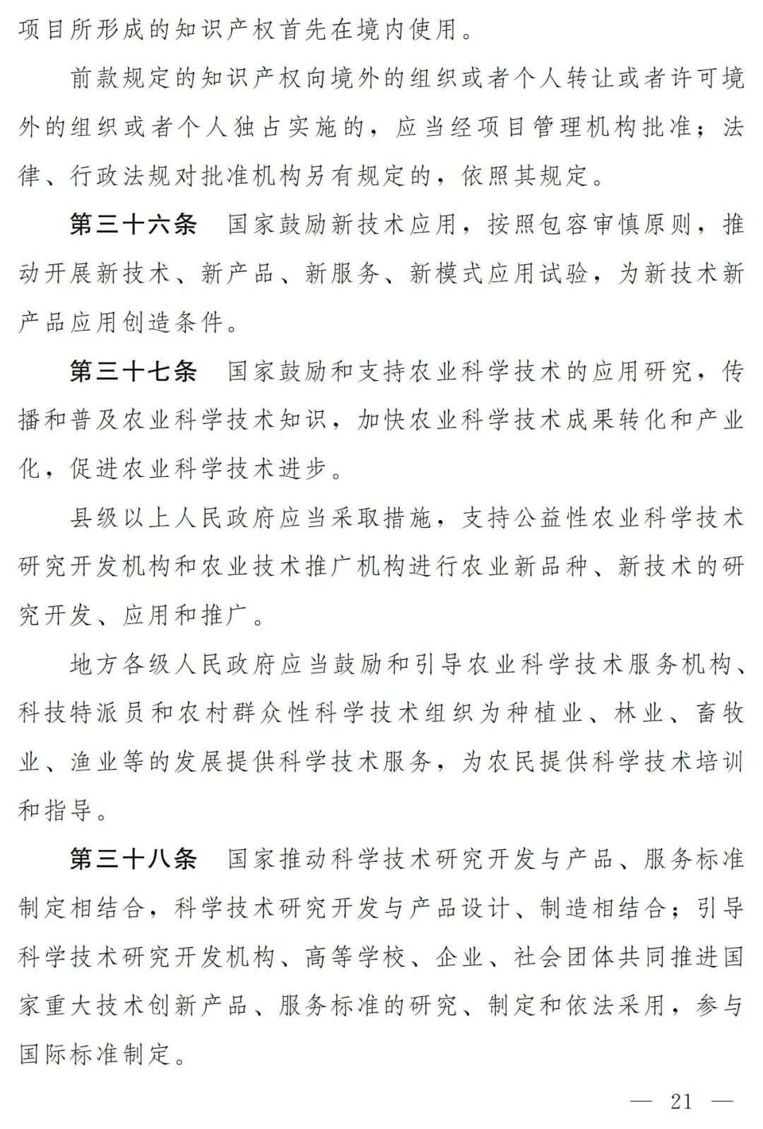 第三十五条国家鼓励利用财政性资金设立的科学技术计划项目所形成的知识产权首先在境内使用。