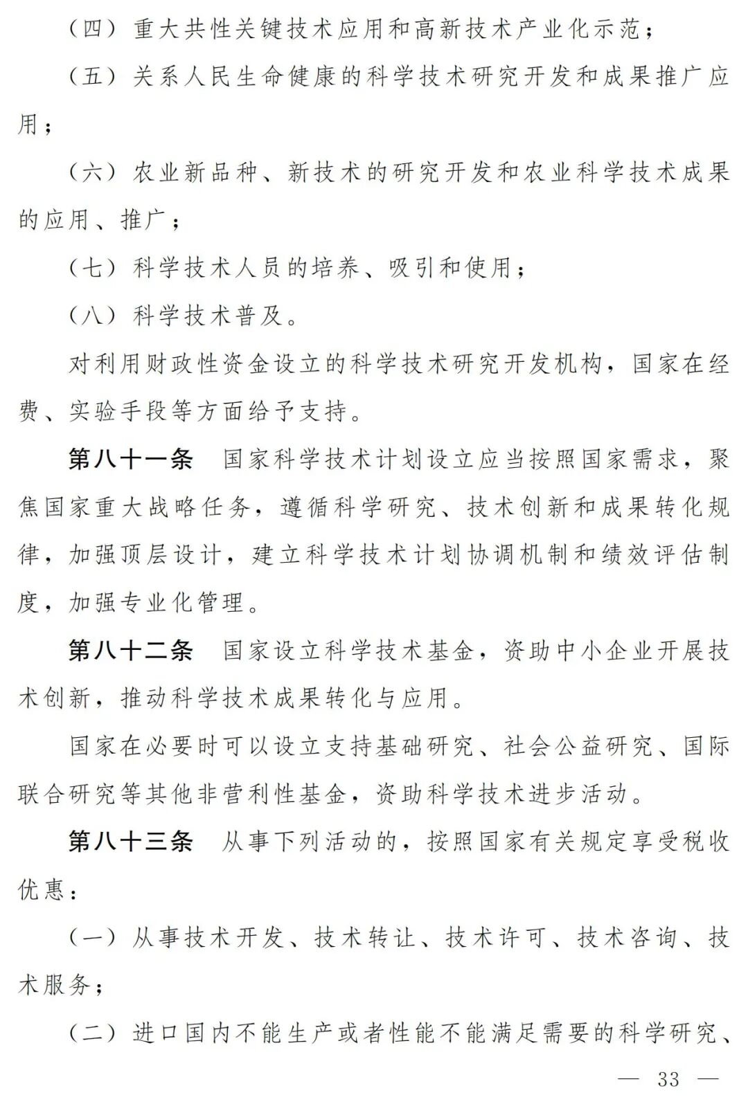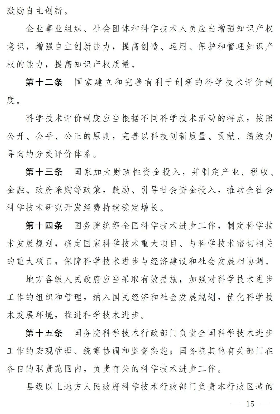 原标题:中华人民共和国科学技术进步法(修订草案)