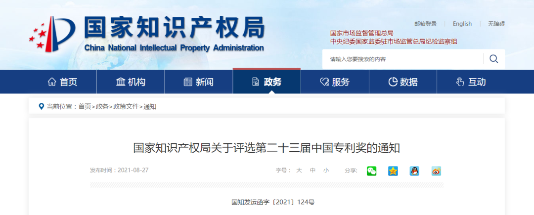 【通知公告】第二十三届中国专利奖评选工作启动