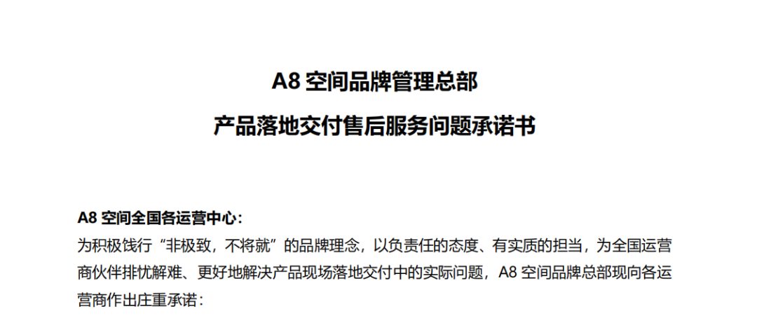 木作行业,安装落地是最大问题。 现场施工环节,哪怕是少了一块板子、少了一个小五金件,都会直接影响产品的正常安装,更别说颜色不对、尺寸错误这些更大的问题。 影响正常的交付工期,一旦遇到这种情况,受损失的不仅是消费者,还有当地经销商,同样会经历麻烦与痛苦,遭遇损失。 现实很残酷,高定木作产品体系复杂、服务环节众多,非常容易出问题。 从测量到设计、生产、物流、安装的整个过程中,无论是设计下单的尺寸误差,生产过程中的质量缺陷,还是物流运输过程中的破损少件,安装现场的刮擦损坏,特定原料与产品使用禁忌的把握不当……任何环节稍有疏忽差错,就会出现各种各样的问题。 所有的问题,就像定时炸弹一样,普遍会集中在安装现场爆发。 当遇到这些问题后,经销商往往是找厂家处理,但响应的效率与处理的质量,很难由经销商把控节奏。 很多厂家接到问题后,会发生两种情况,一是不能快速安排问题件的补单,二是会围绕责任判定归属,和经销商进行一番“理论”。 原因在于,一旦判定是谁的责任,意味着就由谁来承担物流、重新生产、修补等一系列损失和赔付费用,如此一来,又大幅延长了处理时间。 如果经销商不能和业主快速达成谅解,并形成妥善的处理方案,时间拖得越久,不仅业主的损失越大,而且对品牌与商家的意见就会越大。 久拖不决,因此被消费者告上法庭的现象,在行业内屡见不鲜。 走到这一步,没有赢家,经销商和业主都将付出巨大损失和惨重代价。而对于品牌方来讲,声誉也会受到影响。 那么,如何解决这种行业普遍的痛点问题? 近日,华东高定品牌A8空间公开发布《关于产品落地交付售后服务问题承诺书》,一时赢得全国运营服务商的广泛认可,并成为行业里讨论热点,被经销商视为产品交付售后的趋势。 在这份《承诺书》中,A8空间品牌总部承诺:“对于因为厂方责任,产品在安装落地时发现的质量问题,A8空间品牌管理总部将全部承担因重新制作造成的来往物流运费、安装费用以及产品的返工生产费用。” 一定程度上,A8空间揽下了问题处理的责任,主动承担可能产生的各项费用,进而赋能经销商快速处理产品交付与售后中的问题。 那么,其中涉及的质量问题和责任又如何判定? 据了解,A8空间为此专门配套了一份详细的《售后问题责任认定规则及处理方案》,将各种质量问题的表现、认定的标准和原则、责任的归属判定及费用的承担、现场最快的处理补救方案等等,一一列举,做了明确的约定。 对于一时无法或难以判定责任的质量问题,这家公司也有考虑。 态度很明确:消费者第一、业主体验第一,如果责任一时难以界定,经销商必须保证第一时间解决,相关费用总部先行承担,问题处理完后,再认真界定责任。 注意里面的关键信息是:经销商必须保证第一时间解决,相关费用由总部先行承担。 大材研究认为,这种做法的价值在于,把问题的解决、消费者权益的保护放到了第一位,不仅能够改善高定客户的消费体验,突出高定的价值,同时有潜力进一步提升品牌口碑,拉开与同行的距离。 这份承诺放在其它行业,或许不算新鲜。但对于高定木作领域,懂行的人都知道,没有责任意识的担当、没有足够的底气,没有企业敢作这样的承诺! 当问及为什么要出台这样一份质量承诺举措时,A8空间品牌创始人麻敏杰表示,经销商把身家性命都交给我们,是我们最忠实的粉丝,我的粉丝我不宠谁来宠!A8空间的产品,要经过服务才能到达消费者手中,工厂面对的,不是终端客户,我们只有为我们全国各地的运营商做兜底,让他们没有后顾之忧,才能更好地服务千家万户。 在笔者看来,A8空间的这份担当和底气,并不是任何公司都可以做到,更多还得依靠自身的实力。 实力体现在哪些地方?就是A8空间历经8年打造的系统能力。 从下单,到生产管控,到产品出厂前的检验试装,再到物流运输,A8空间设计了严格的标准与服务流程,实施严谨管控,将可能在终端出现的问题降低到最少。 据了解,2020年期间,A8空间用于处理全国50多个运营商的总售后费用仅十几万元,从侧而验证了优秀的产品落地能力。 援引A8空间品牌创始人麻敏杰的观点,如果你的问题很多,你根本就不敢这么干! “非极致,不将就”,是A8空间的品牌理念。 麻敏杰说,这个理念,落到产品和服务打造上,就是产品出了任何问题,我们一定会切实负起责任。高定产品异常复杂,再好的系统也不能保证一个问题不出。但我们的运营商都知道,只要出了问题,我们一定不扯皮、一定以最快速度去解决。 分析认为,A8空间此举,也是“自断后路”,进一步倒逼公司订单、客服、生产等部门,强化责任意识、优化系统管理,最大程度地减少问题,让落地服务越来越优。 近年来,A8空间除了不断提升内控管理机制,同时采取多种办法勉励与督促各地运营商,要建立起自身强大的售后处理能力。 其中一项具体要求就是,对整木定制不可避免会出现的问题,经销商自己有能力第一时间在现场解决,避免来回折腾,造成时间、投入的浪费,更重要的是,给客户塑造良好的服务体验。 为此,A8空间专门开设了线上线下培训课堂,强化经常性的培训工作,从知识与经验层面,提升运营商的服务能力。 工厂、经销商两手抓,两条线都足够强大,自然有助于提升面向客户的交付质量。 从全行业的情况看,无论是综合型的大家居龙头,还是各个细分