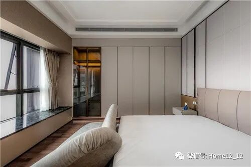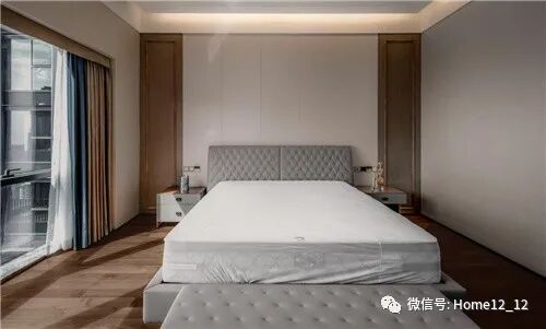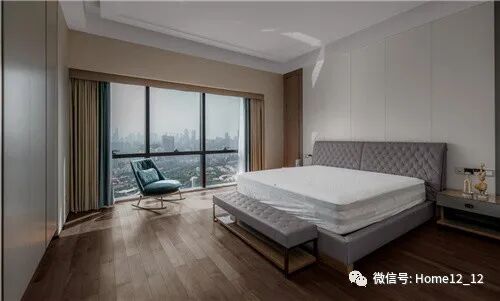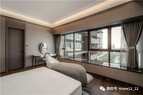 充分利用空间的自身优势,以飘窗和落地窗形式打造超大观景视野,将窗外繁华街景、都市风光尽收眼底。卧室空间以柔和的米白色、驼色、木色调营造温馨祥和感,呈现舒适、尊贵的都市生活。
