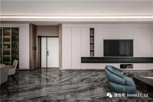 针对这个项目的特殊性,我们在前期构思时就考虑了材料的实际实施性、落地性,以现代风格为导向,地面运用大砖通铺,将客餐厅结合在一起,背景墙采用大理石点缀提升空间档次,公共区域大面积硬包拉升空间温馨氛围。