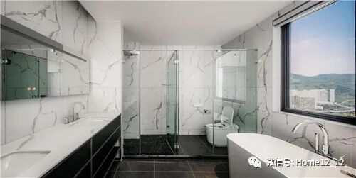 以白色为主调,明朗整洁,空间功能区域划分合理精细。大大的椭圆形浴缸置于开阔玻璃窗前,洗净纤尘,舒缓身心,享受慢节奏的宁静欢喜。