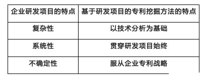 表1企业研发项目的特点与专利挖掘方法特点对比表