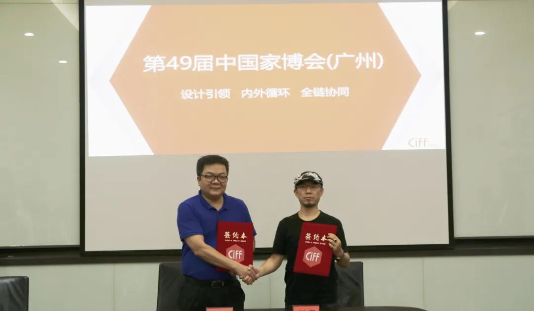 顾家家居股份有限公司副总裁刘宏与中国对外贸易广州展览有限公司副总经理陈旺辉签署战略合作协议
