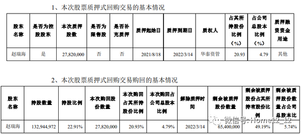 公告显示,曲美家居集团股份有限公司于近日收到公司控股股东、实际 控制人赵瑞海先生的通知,因质权人华泰证券(上海)资产管理有限公司更换资产管理计划产品的原因,赵瑞海先生将其持有的公司部分股权质押解除及再质押: