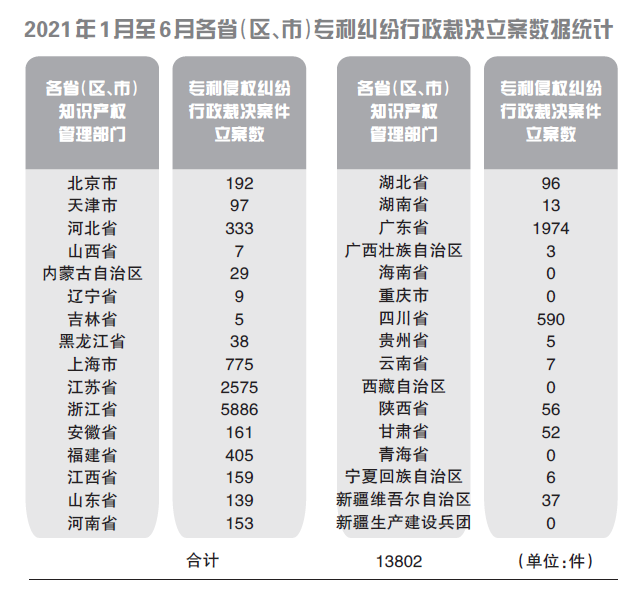 发挥行政优势、营造良好环境!我国上半年专利侵权纠纷行政裁决立案1.38万件