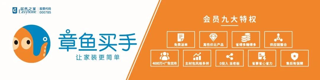 章鱼主材买手平台依托居然之家品牌优势,不仅让入驻章鱼买手的会员享有免费派单、零投入当老板、供应链整合以及售后保障等九大特权,还提供299元/699元主材包,为工长、设计师和小型家装公司提供靠谱的主材采购平台,为装修顾客提供好而不贵的产品。