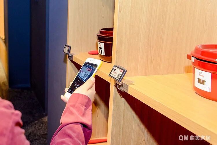 经过一番精心挑选,便捷的数字化在购买环节也不能落下。在店内,各个产品都拥有自己的NFC电子价签,价签上的电子水墨屏除了显示商品品名、型号、价格等信息,还展示了一个小小的二维码。当拥有NFC功能的智能手机轻轻贴近价签,手机上就能立刻展示商品信息,实现线上下单。