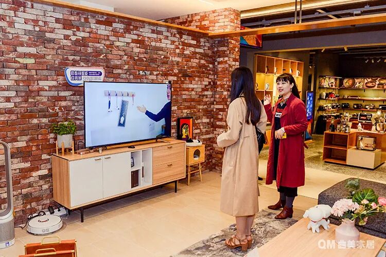当消费者站在曲美店中的智能大屏前,AI系统根据消费者此前在曲美的购物行为,推送不同风格的样板间图片,在进入不同生活场景后,还会实时推送各种相宜的家居组合搭配。