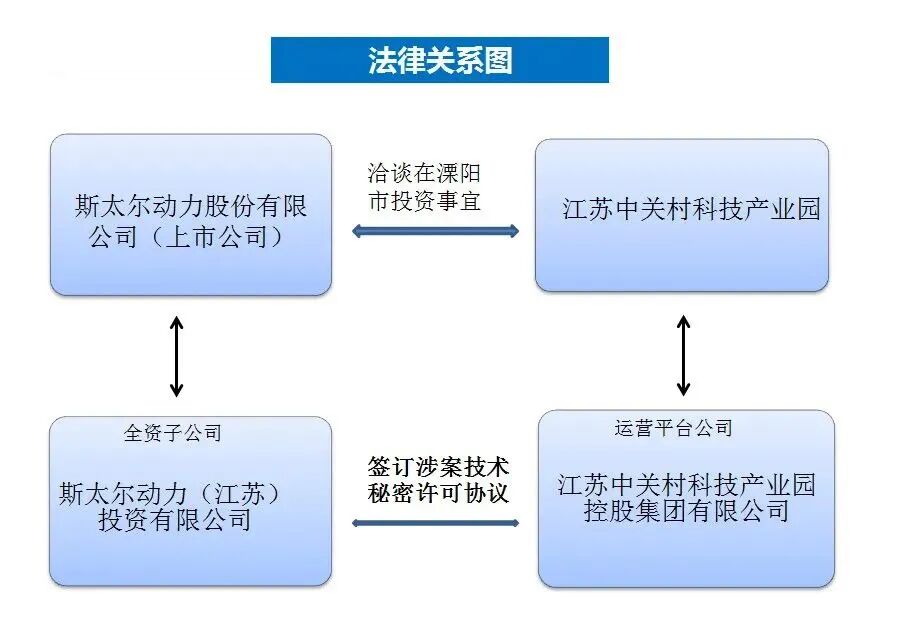 2016年12月6日,斯太尔动力(江苏)投资有限公司(许可方,以下简称斯太尔江苏公司,系斯太尔股份公司的全资子公司)与江苏中关村科技产业园控股集团有限公司(被许可方,以下简称中关村公司,系中关村产业园的运营平台公司)签订涉案技术许可协议,约定主要内容包括:斯太尔江苏公司将协议所涉柴油发动机的全部商业机密和核心技术授权给中关村公司,由其独家使用该协议所涉柴油发动机全部商业机密与核心技术;许可使用费为2亿元(固定)及每年运营该技术秘密收入的3.5%。合同有效期10年。协议还约定了斯太尔江苏公司应当交付的具体技术资料。