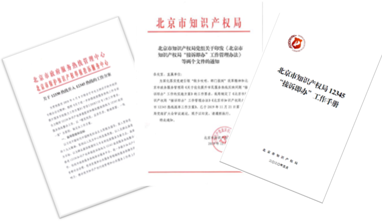2019年11月,北京市知识产权局印发《北京市知识产权局“接诉即办”工作管理办法》、《北京市知识产权局办理市12345热线派单工作方案》。