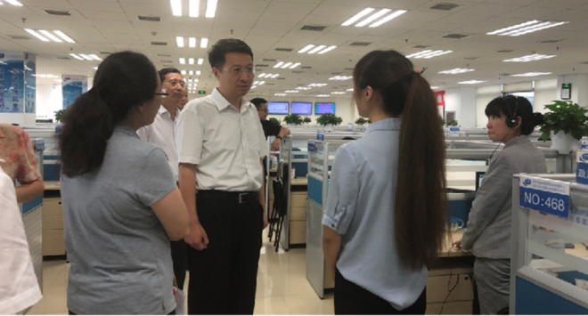 2019年8月5日,北京市知识产权局党组书记、局长杨东起(右三)到市12345调研。
