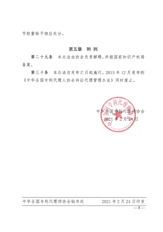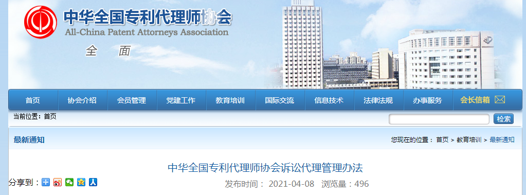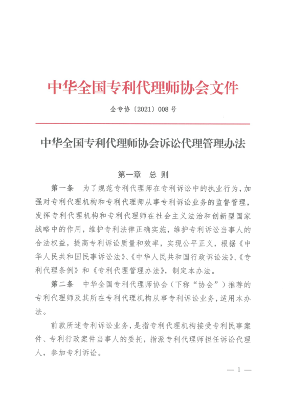 《中华全国专利代理师协会诉讼代理管理办法》发布