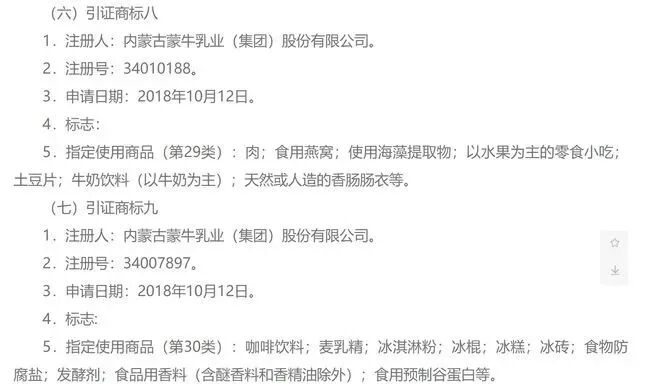 4月8日,北京法院审判信息网显示,元气森林就35178063号“燃”商标的二审诉讼中胜诉。二审法院撤销了一审判决与商评委对元气森林方面的驳回复审决定书。 根据北京市高院的披露,2018年12月7日,元气森林方面申请第35178063号“燃”商标,指定使用商品(第30类):咖啡;茶;茶饮料;甘菊茶饮料;糖;蜂蜜;冰糖燕窝;燕麦粥;以谷物为主的零食小吃;以米为主的零食小吃;方便米饭;薄片(谷类产品);方便面;龙虾片;冰淇淋;冻酸奶(冰冻甜点);调味品(统称复审商品)。 2017年11月2日,四川锦膳食品有限公司申请第27247874号商标。2018年10月12日,内蒙古蒙牛乳业(集团)股份有限公司方面申请第34010242、34010188、34007897、34005718号商标。
