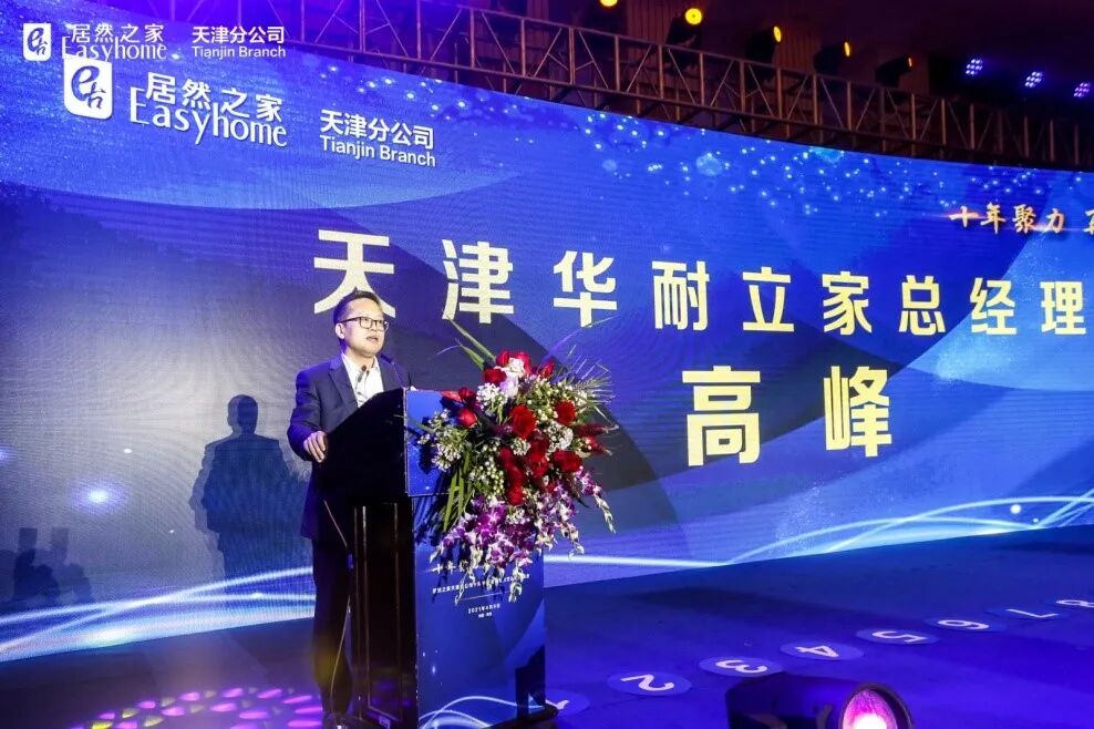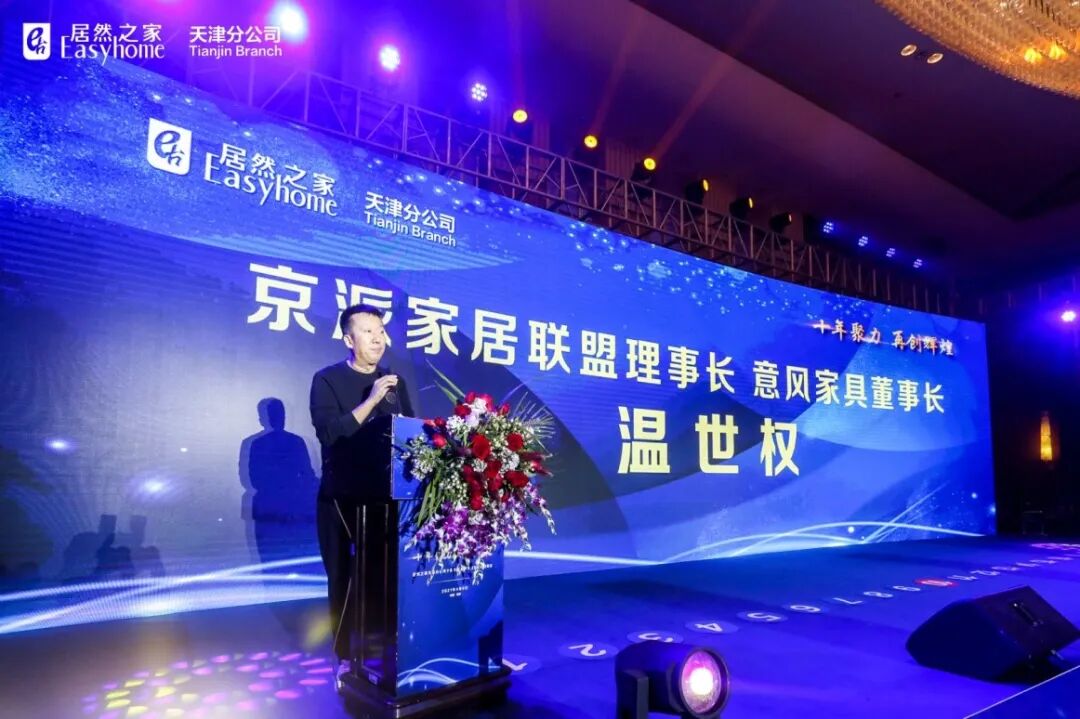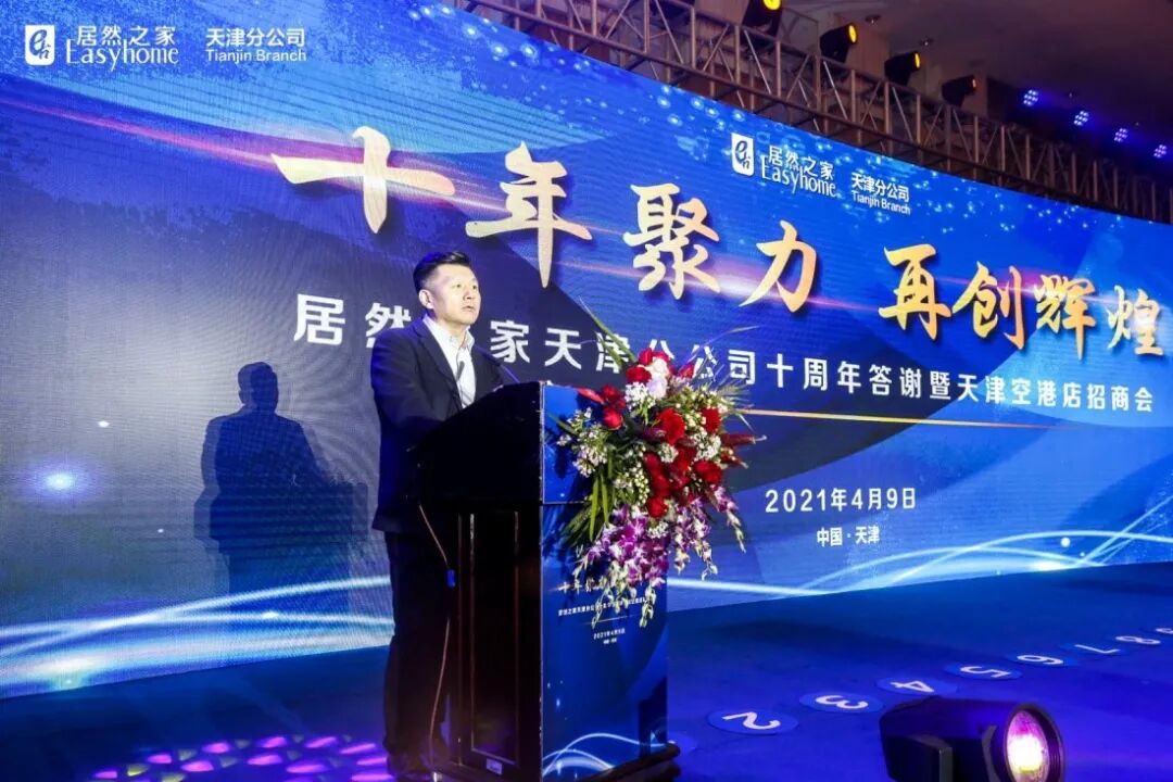 居然之家天津分公司总经理文琳君先生上台致感谢词。首先回顾了居然之家天津分公司十年发展历程,十年来居然之家凭借卓越的经营理念、丰富的卖场管理经验、完善的服务体系在天津地区稳步发展,现已有津昆桥店、珠江友谊店、滨海店和武清店四家门店。居然之家天津分公司十年的发展,取得的成绩,离不开集团公司的正确指导、业主方坚强的后盾和行业协会的支持;并在会上特别感谢为天津分公司奋斗过的居然人、工厂和经销商的支持、媒体朋友和社会各届的监督与鞭策和新老顾客的厚爱。同时,文琳君先生还表示,在接下来的日子里,天津分公司将不忘初心,砥砺前行,加快连锁脚步、继续推进线上线下融合,贯彻落实集团公司“六大赛道”的发展、进一步做好服务管理,继续谱写天津分公司的华丽篇章。