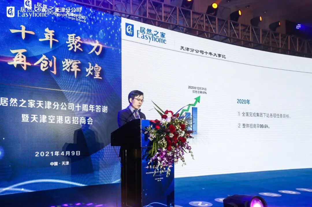 2021年4月9日,“十年聚力 再创辉煌”居然之家天津分公司十周年答谢暨天津空港店招商会在天津滨海圣光皇冠假日酒店隆重举行。政府领导、行业协会领导、居然之家集团领导、居然之家业主方代表、国内一线家具建材品牌厂商及经销商代表等四百余人参加此次盛会。