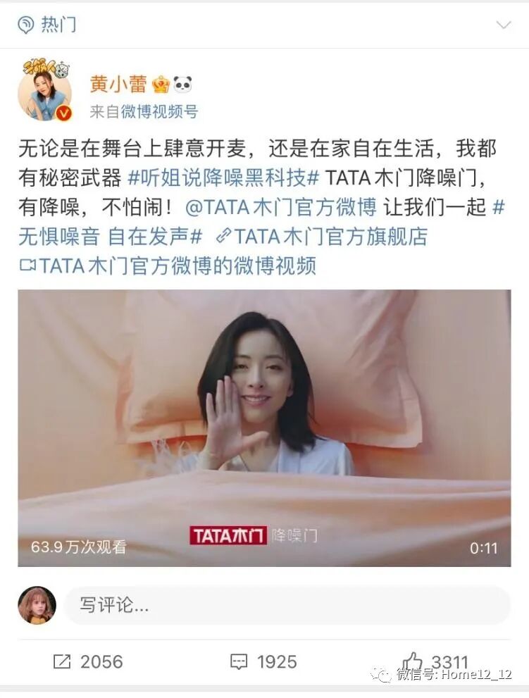 其中,黄小蕾在节目中的良好表现深入人心,加之通过广告短视频对TATA木门进行软性宣传,为节目收视率助力的同时,也为TATA木门聚集了注意力资源。广告短视频融合歌曲、舞蹈、生活情景,配合明星本人感染力的表现让TATA木门的品牌名称被不断重复,再度展现了品牌与话题明星连体营销的能量。