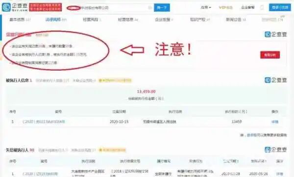 其二,通过“企查查”(官方备案企业征信机构)查询,该公司已被法院列为失信被执行企业,其中涉及多个法院的判决,因未找到可供执行的财产全部未履行。