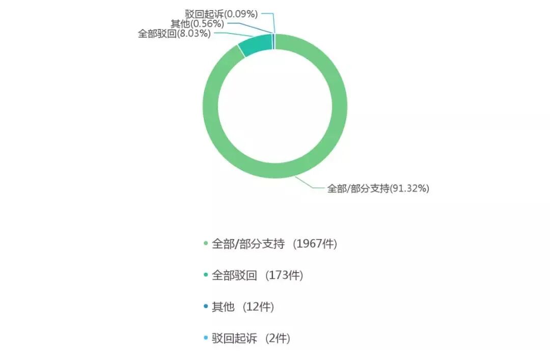 从裁判结果也可以看出,在91.32%的案件中,法院都支持了原告的诉讼请求,即维护了商标持有者的权益。而驳回的案件中,约大部分是因为原告无法证明其存在在先权利——即没有注册商标,或者不能证明自己率先使用该品牌。