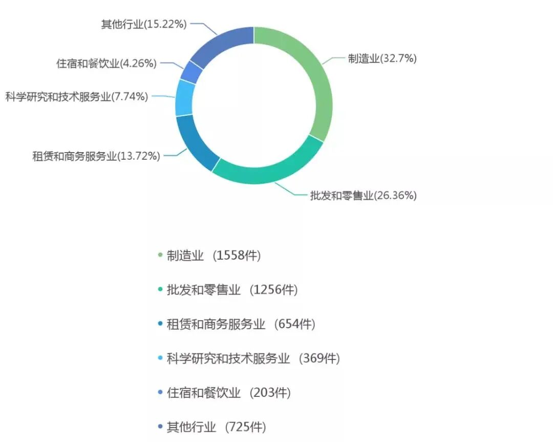 从图中可以看到,因借他人注册商标之名来注册企业商号的案件呈逐年上升的态势。这种“借鸡生蛋”的行为主要集中在制造业和销售行业。这表明,其目的集中表现为生产冒牌产品和借牌营销,从而降低生产和推广的成本,以增加利润。