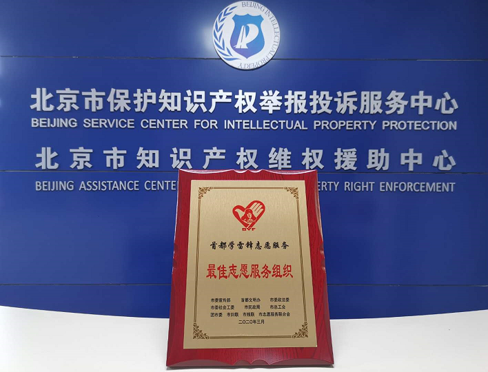 2020年,北京市委宣传部、首都文明办等部门评选首都保护知识产权志愿服务总队为“首都最佳志愿服务组织”