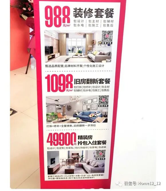 为此,靓家居主要以两种方式面向旧房改造市场,一种是1098元/平米的全屋改造套餐,针对小户型则主推一口价服务产品。刚刚过去的10月25日,正是靓家居首个整装套餐的12周年。