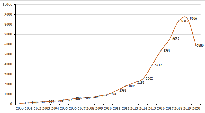 (受公开滞后影响,2020年专利数据不完整,统计数据截止至2020年10月底)