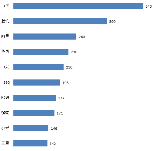 智能推荐是人工智能的重要应用领域之一,前景广阔。相较于高校,企业更加重视智能推荐技术的专利申请和布局。数据表明,百度公司以1414件专利申请量,540件专利授权量成为智能推荐技术领域的领头羊企业。值得注意的是,智能推荐领域专利申请量排名前十位的权利主体均为国内企业,体现了国内企业的在这一领域的技术创新优势较大,专利布局更为完善。