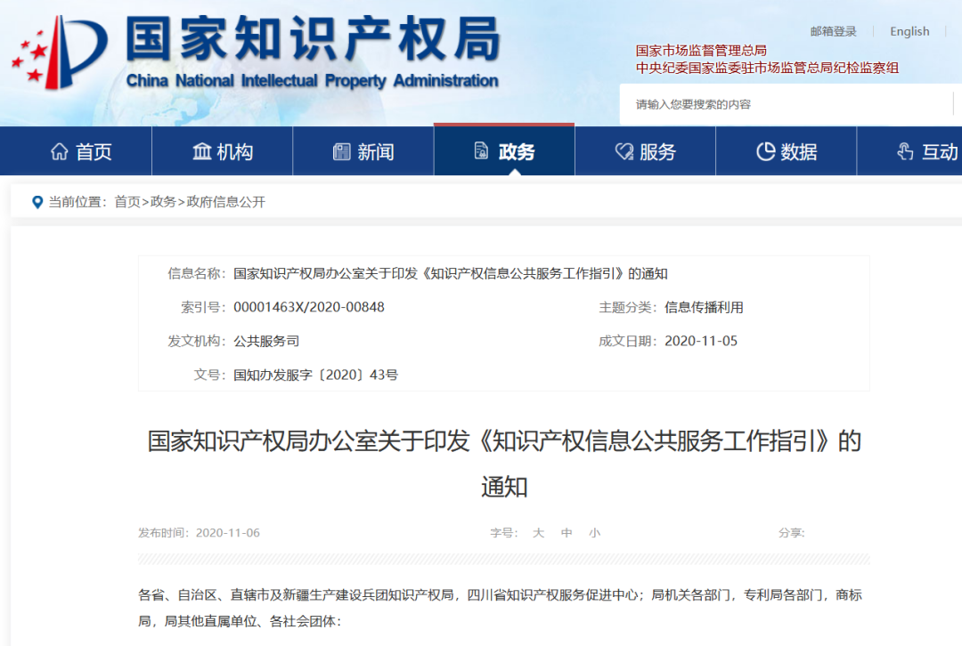 国知局:《知识产权信息公共服务工作指引》全文发布!