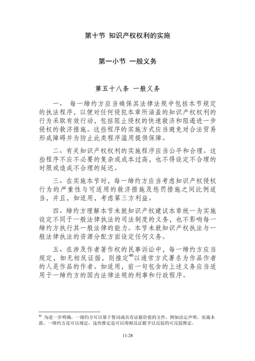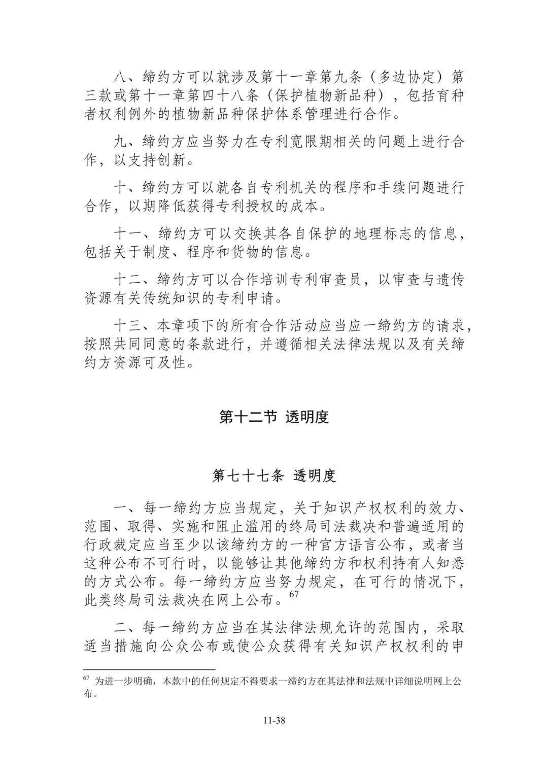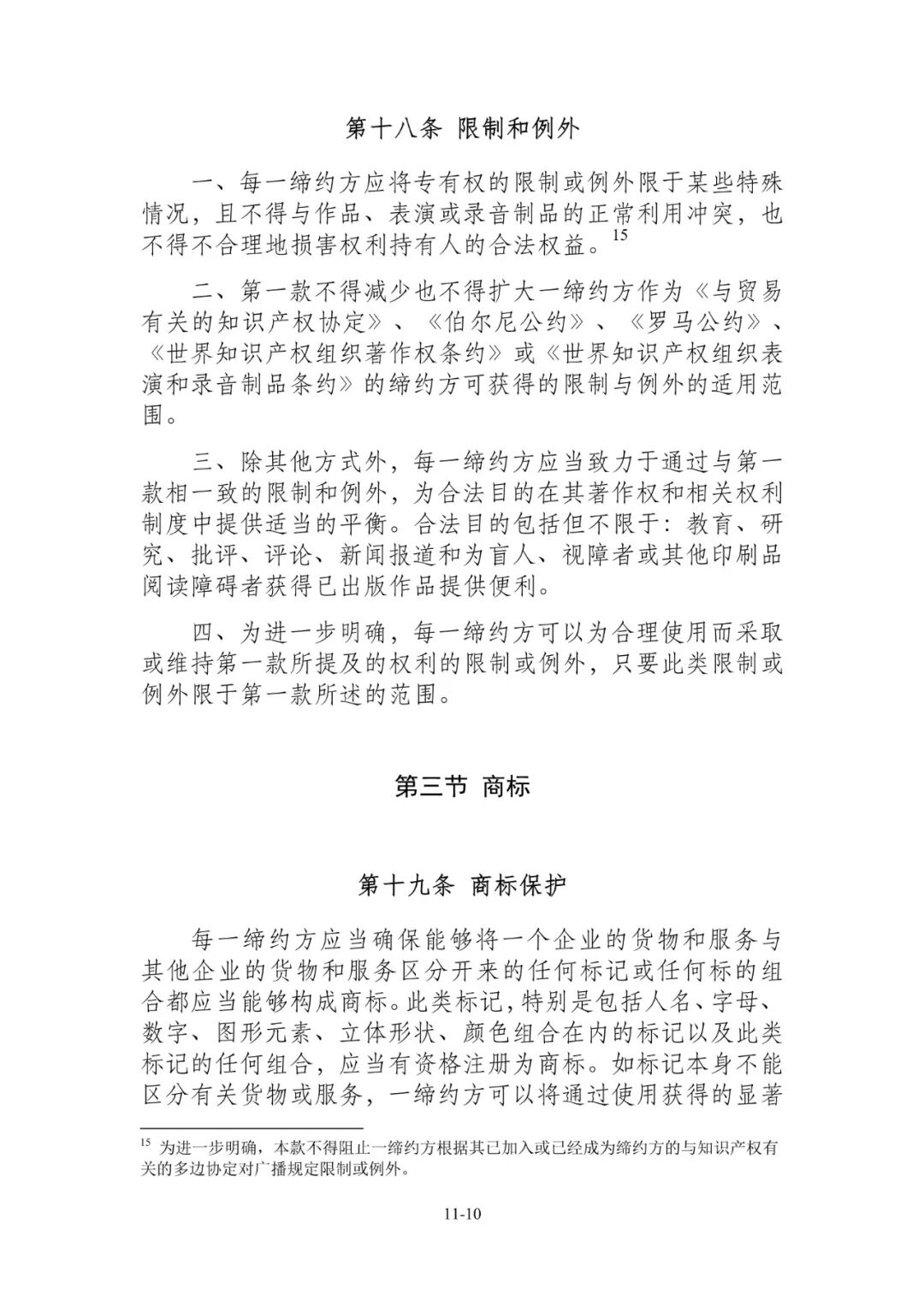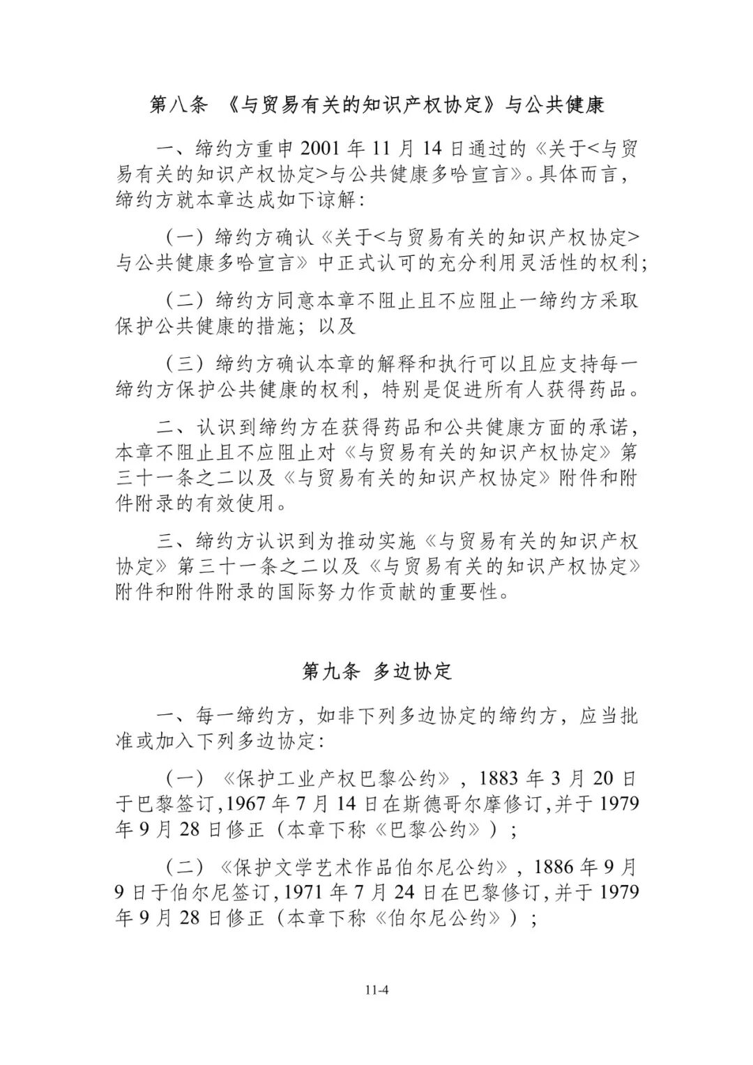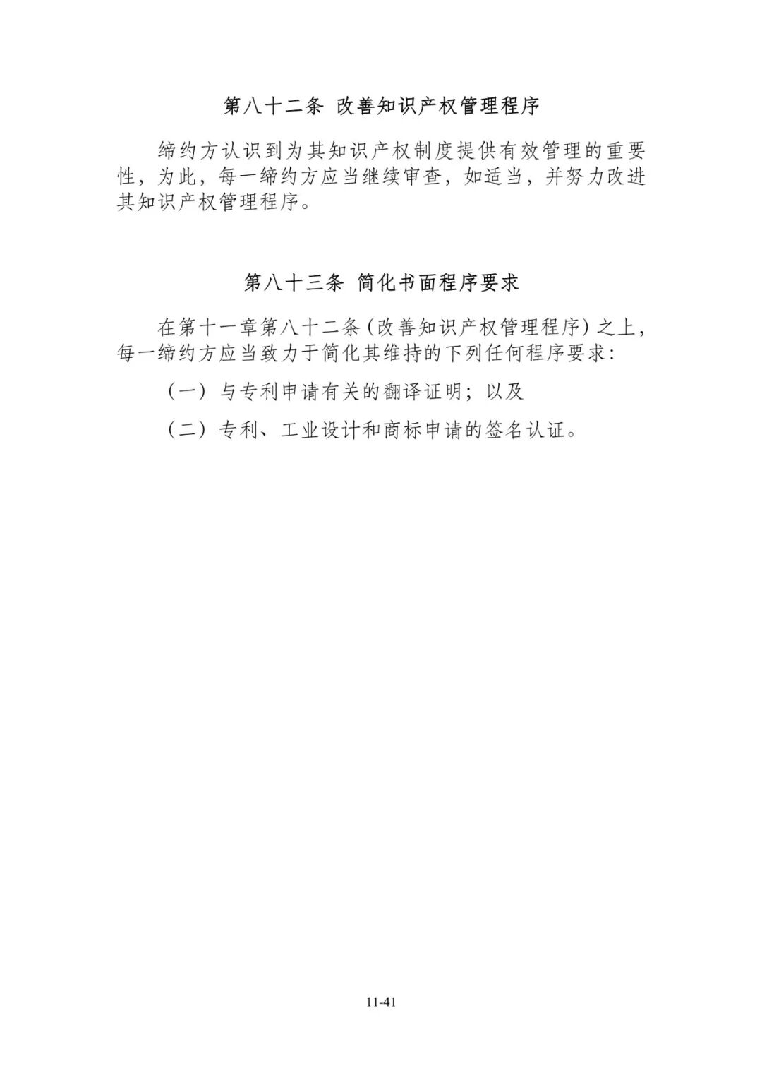 第11章知识产权部分包含14节共计83条,以及《附件一 特定缔约方过渡期》、《附件二 技术援助请求清单》。