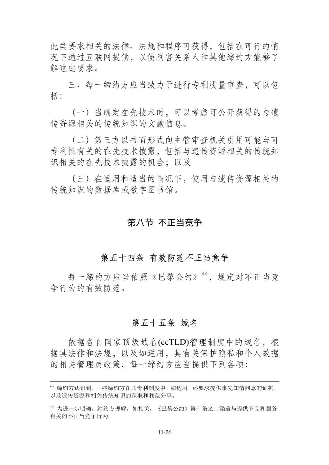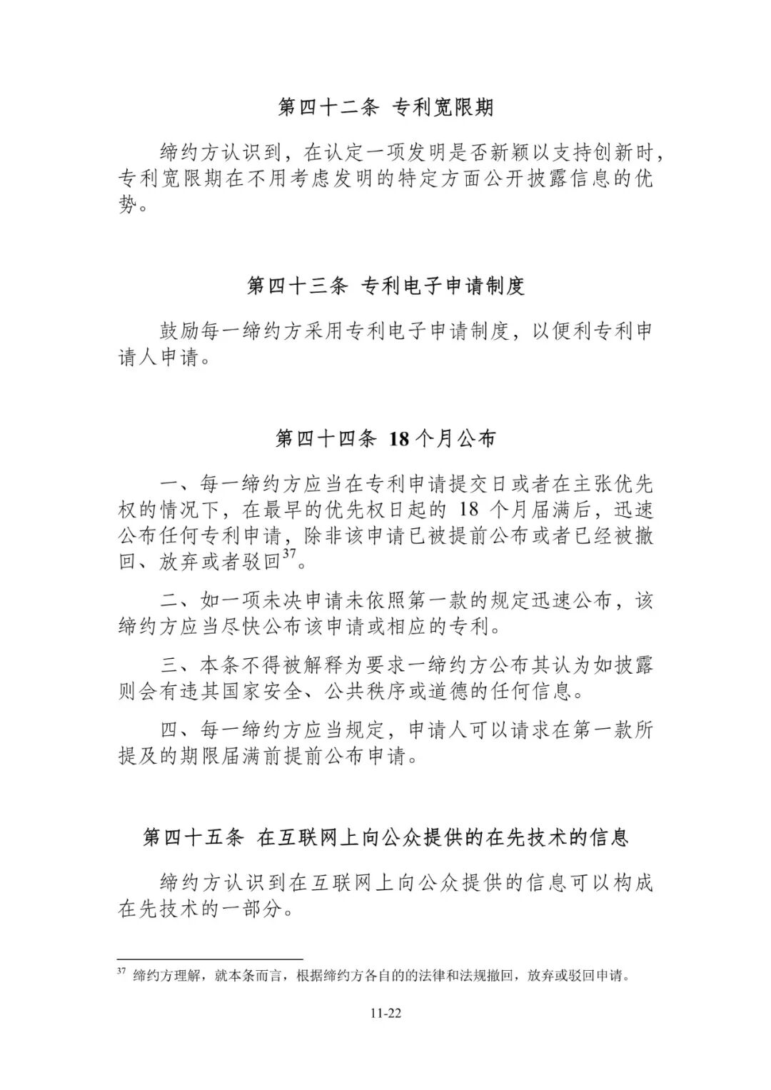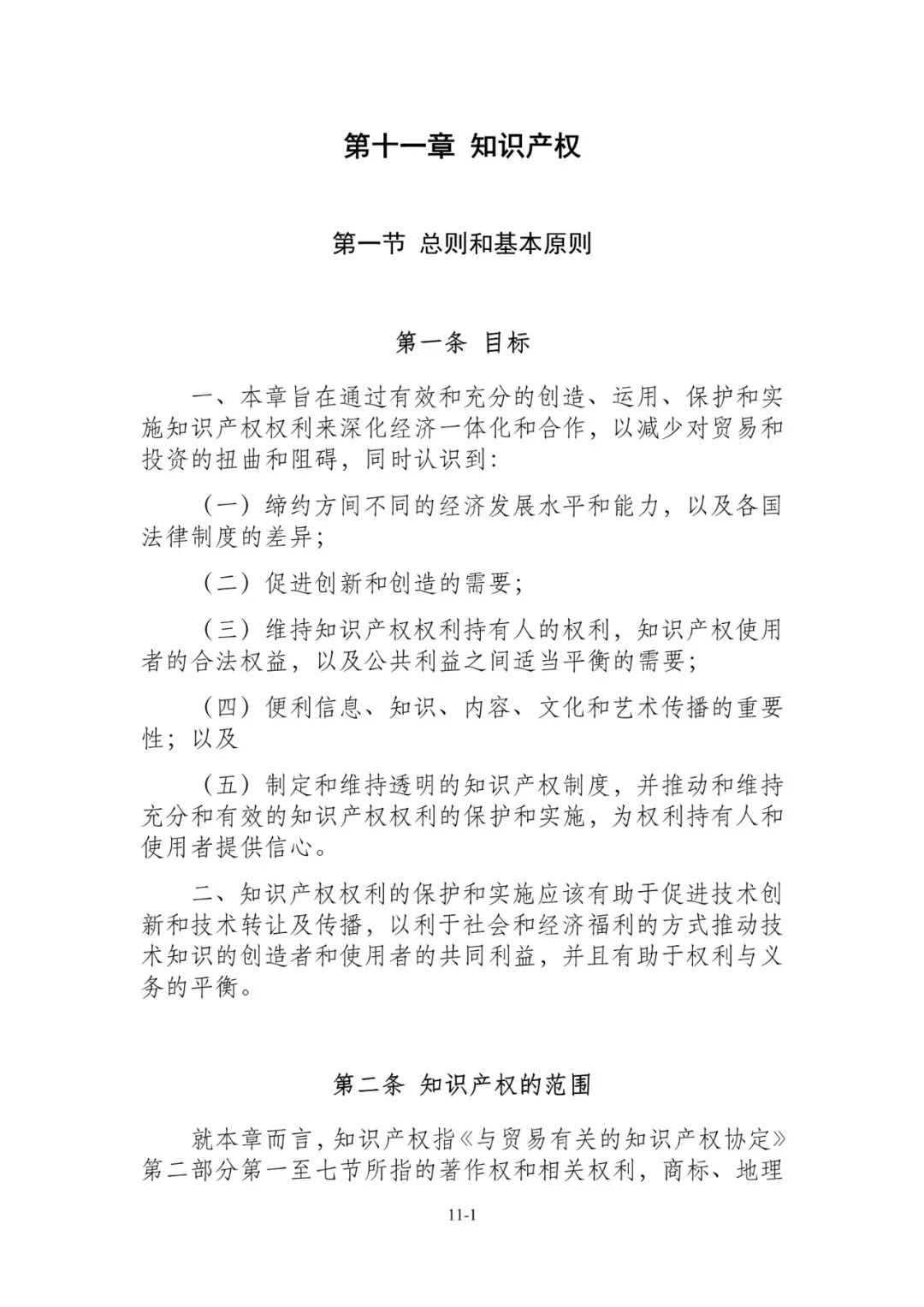 RCEP知识产权章共包含83个条款和过渡期安排、技术援助2个附件,是RCEP协定内容最多、篇幅最长的章节,也是我国迄今已签署自贸协定所纳入的内容最全面的知识产权章节。涵盖了著作权、商标、地理标志、专利、外观设计、遗传资源、传统知识和民间文艺、反不正当竞争、知识产权执法、合作、透明度、技术援助等广泛领域。既包括传统知识产权主要议题,也体现了知识产权保护发展的新趋势。过渡期和技术援助相关规定,旨在弥合不同成员发展水平和能力差异,帮助有关成员更好地履行协定义务。