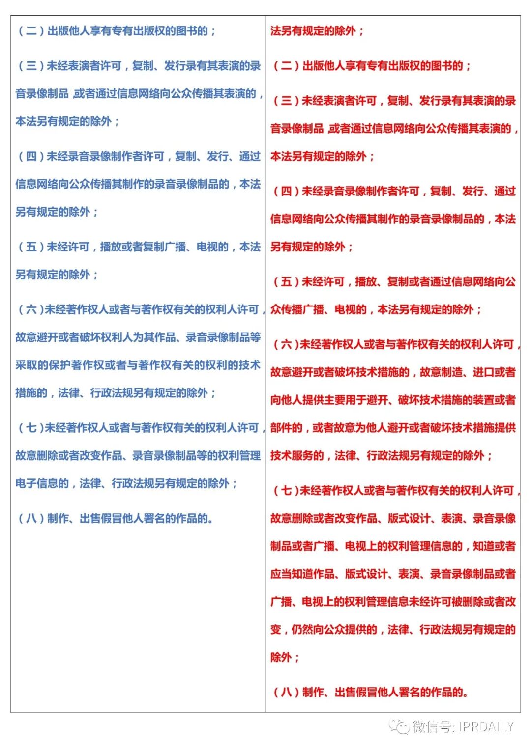 (七)未经著作权人或者与著作权有关的权利人许可,故意删除或者改变作品、版式设计、表演、录音录像制品或者广播、电视上的权利管理信息的,知道或者应当知道作品、版式设计、表演、录音录像制品或者广播、电视上的权利管理信息未经许可被删除或者改变,仍然向公众提供的,法律、行政法规另有规定的除外;