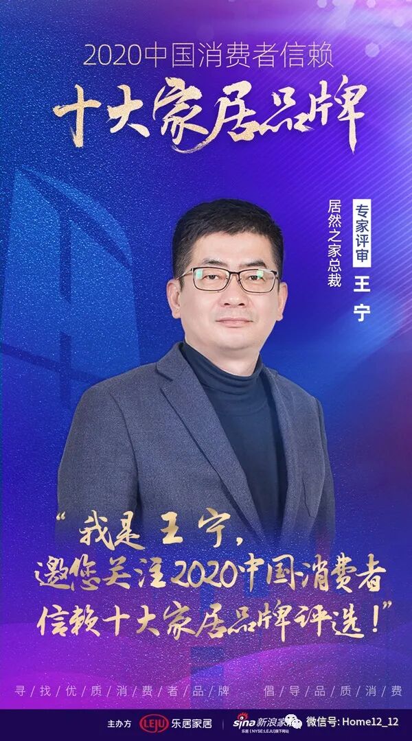 新浪家居讯居然之家总裁王宁先生受邀担任“2020中国消费者信赖十大家居品牌”评选专家评审。