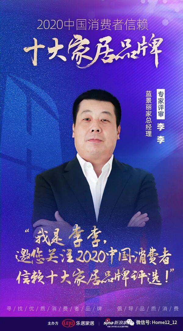 新浪家居讯蓝景丽家总经理李李先生受邀担任“2020中国消费者信赖十大家居品牌”评选专家评审。