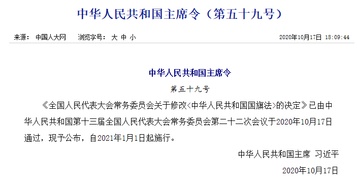 新修改的国旗法:明确国旗及其图案不得用作商标、授予专利权的外观设计和商业广告!