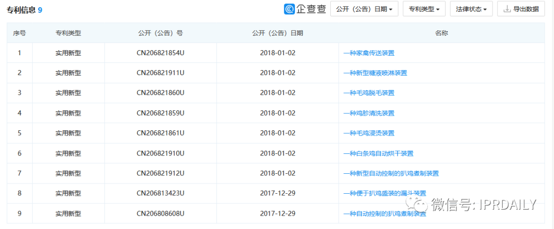 除了商标,山东扒鸡公司还申请了9项专利技术。
