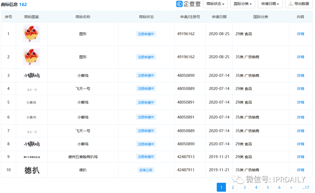 据企查查显示,德州扒鸡公司共申请了162个商标。