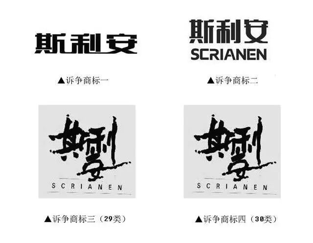 该案中,争议商标由“莫斯利安”、“MOMCHEILOVTSI”及图组成;引证商标一、四、五由汉字“斯利安”组成;引证商标二由汉字“斯利安”、字母“SCRIANEN”构成;引证商标三由书写体汉字“斯利安”、字母“SCRIANEN”构成。